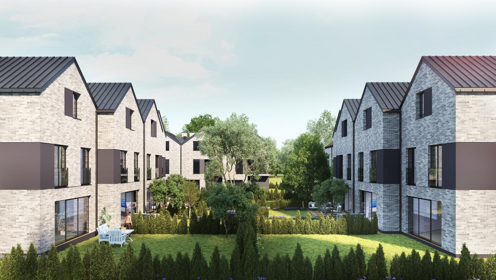 Budynki płynnie łączą się z otaczającą je zielenią, wpisując się w spokojne otoczenie warszawskiego Henrykowa, jakie urzeka spokojem i ciepłą atmosferą.