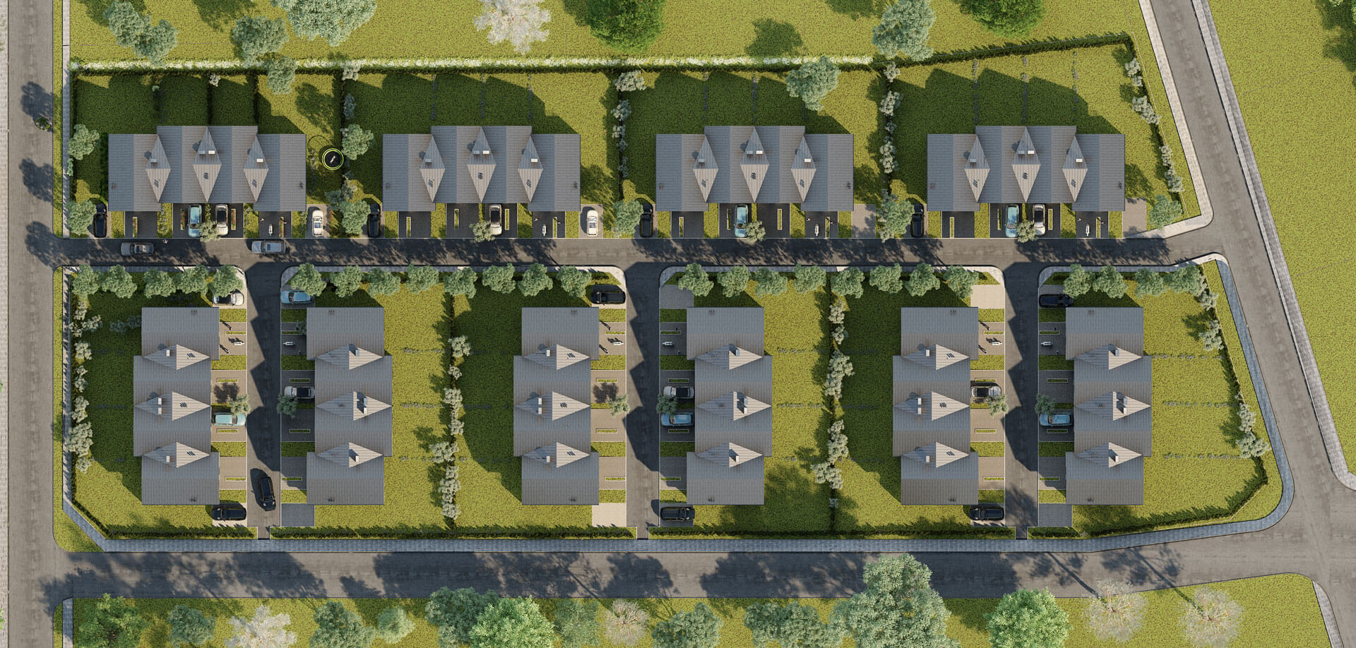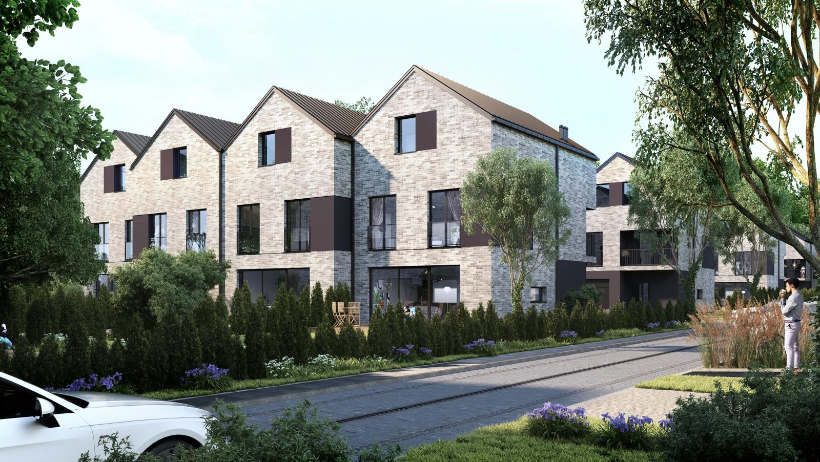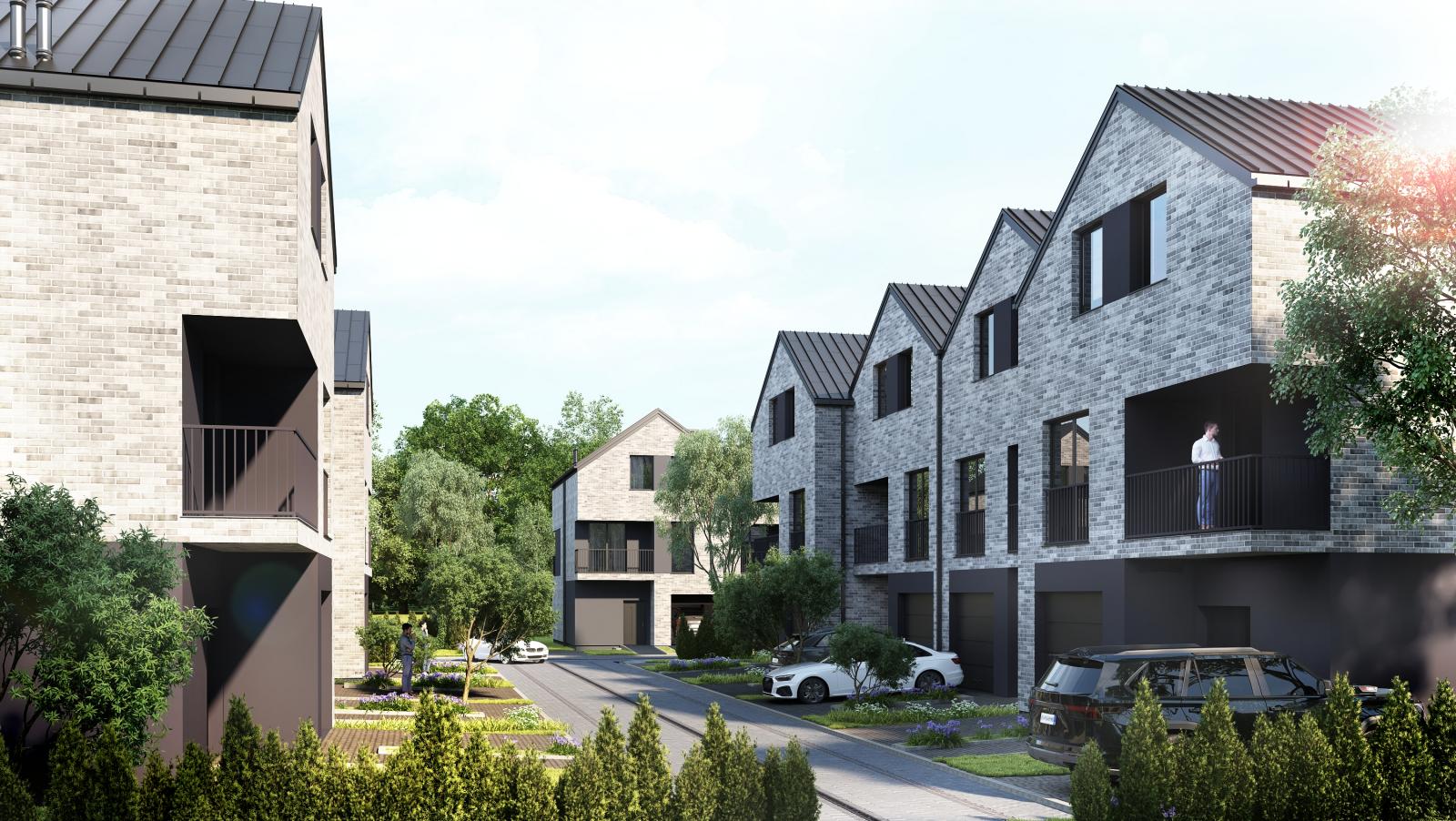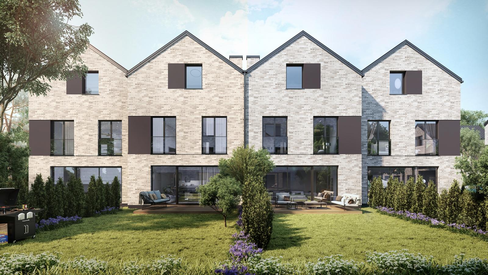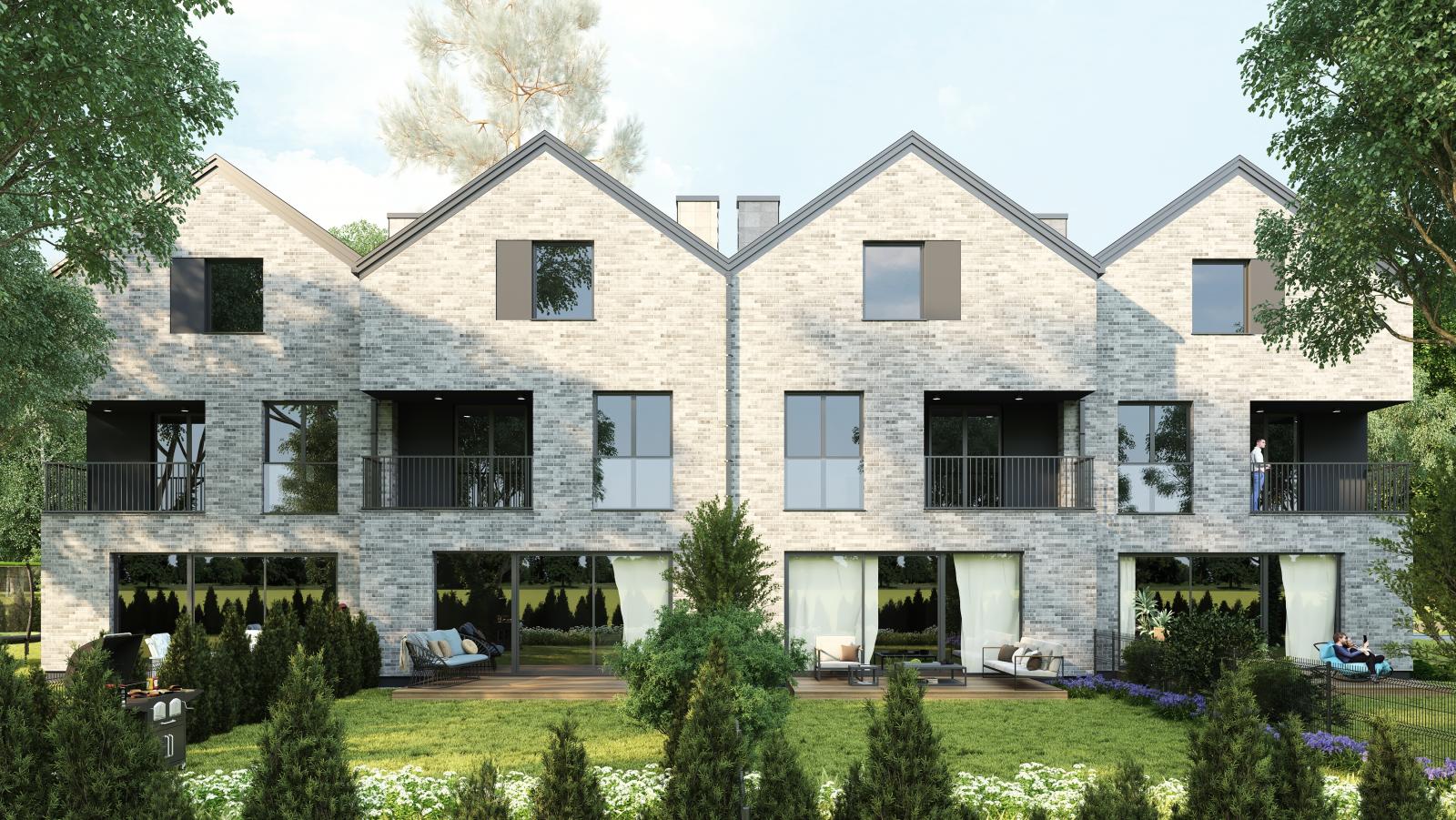 Budynki płynnie łączą się z otaczającą je zielenią, wpisując się w spokojne otoczenie warszawskiego Henrykowa, jakie urzeka spokojem i ciepłą atmosferą.